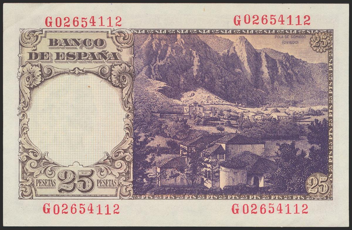 25 Pesetas. 19 de Febrero de 1946. Serie G. (Edifil 2021: 450a). Apresto original. SC-.
