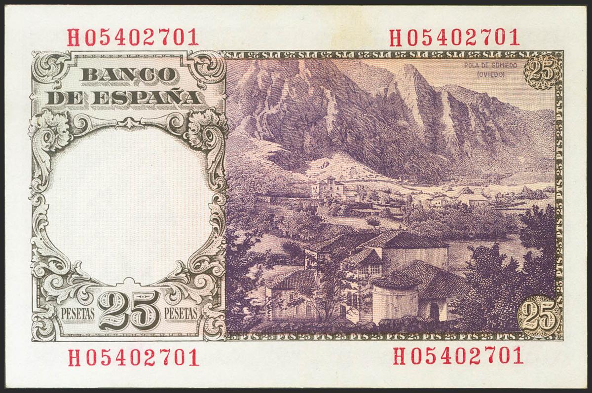 25 Pesetas. 19 de Febrero de 1946. Serie H. (Edifil 2021: 450a). Apresto original. SC.