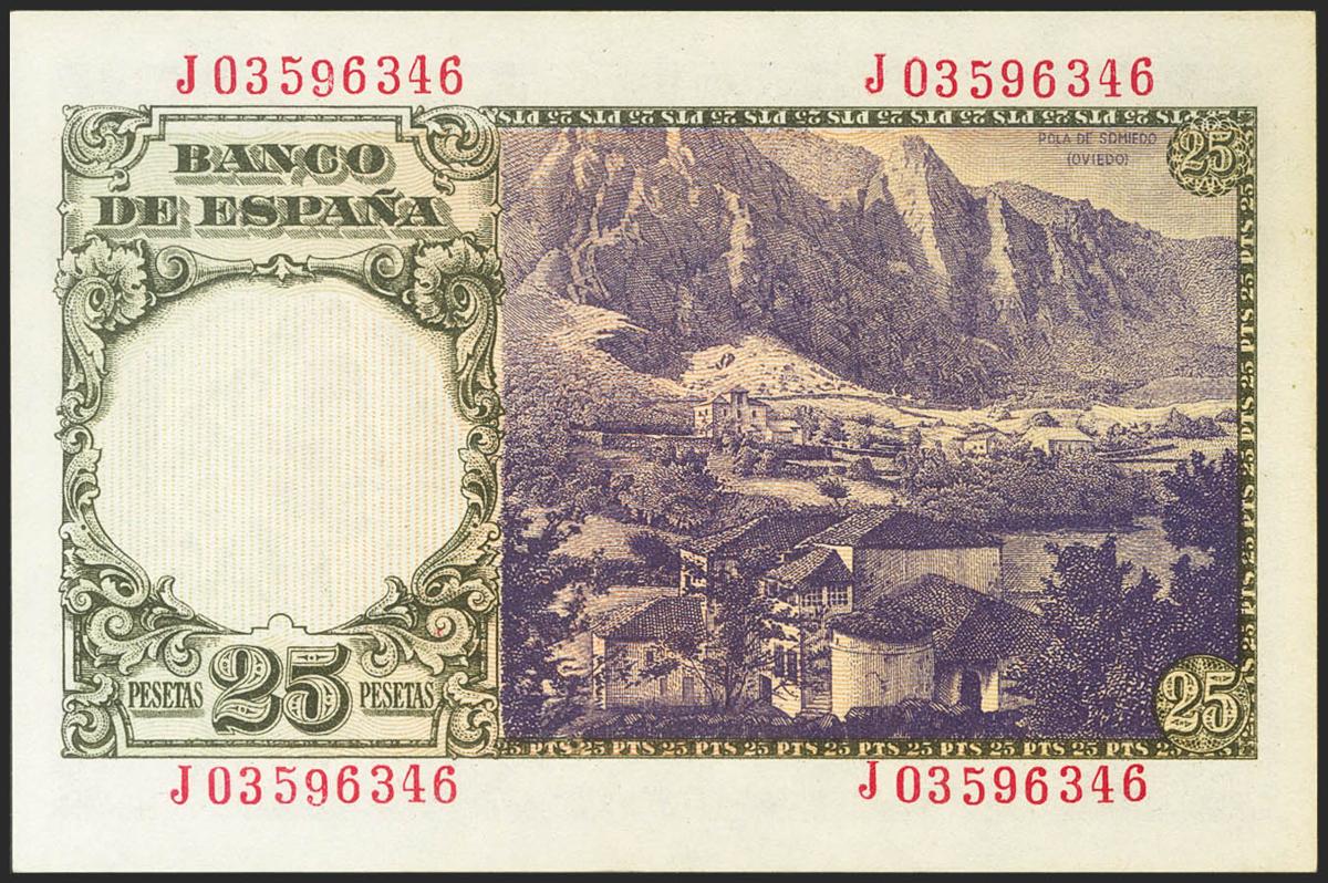25 Pesetas. 19 de Febrero de 1946. Serie J. (Edifil 2021: 450a). Apresto original. SC-.