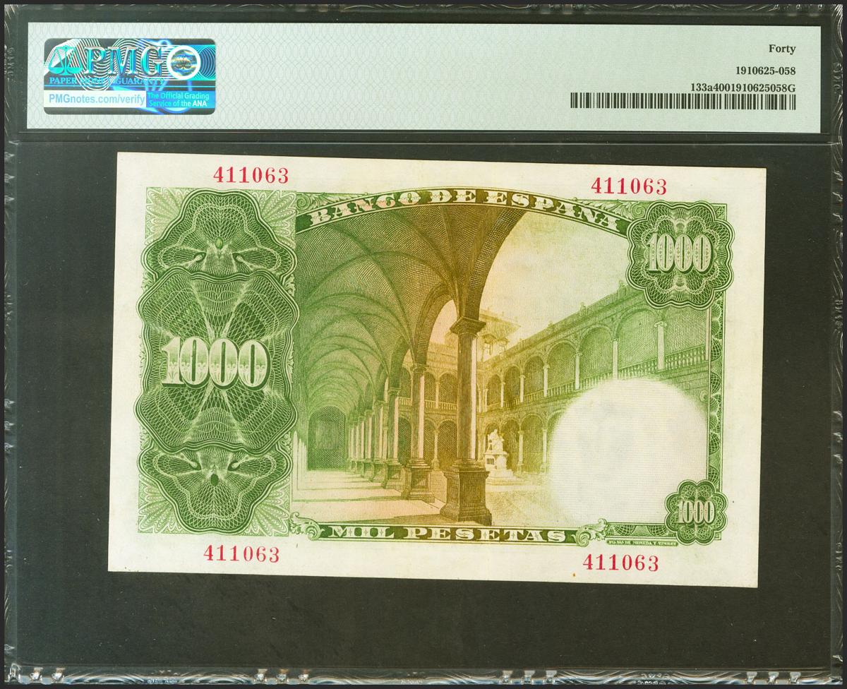 1000 Pesetas. 19 de Febrero de 1946. Sin serie. (Edifil 2021: 453, Pick: 133a). Inusual. EBC. Encapsulado PMG40.