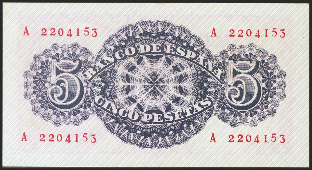 5 Pesetas. 12 de Abril de 1947. Serie A. (Edifil 2017: 454a). Apresto original. SC-.