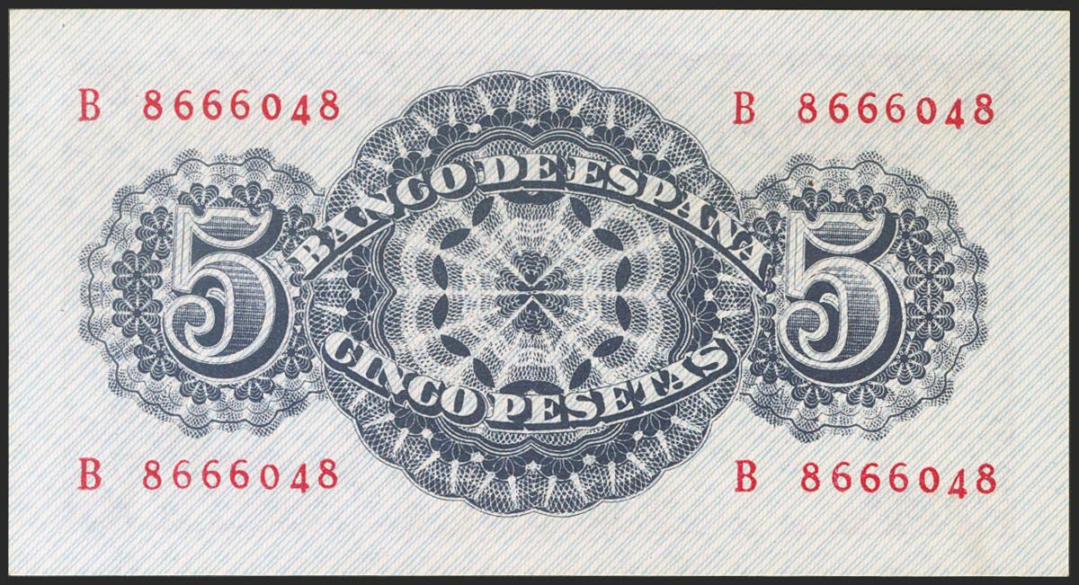 5 Pesetas. 12 de Abril de 1947. Serie B. (Edifil 2021: 454a). Apresto original. SC-.