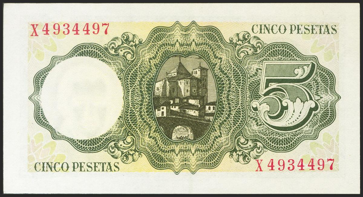 5 Pesetas. 16 de Agosto de 1951. Serie X. (Edifil 2021: 459a). Apresto original. SC-.
