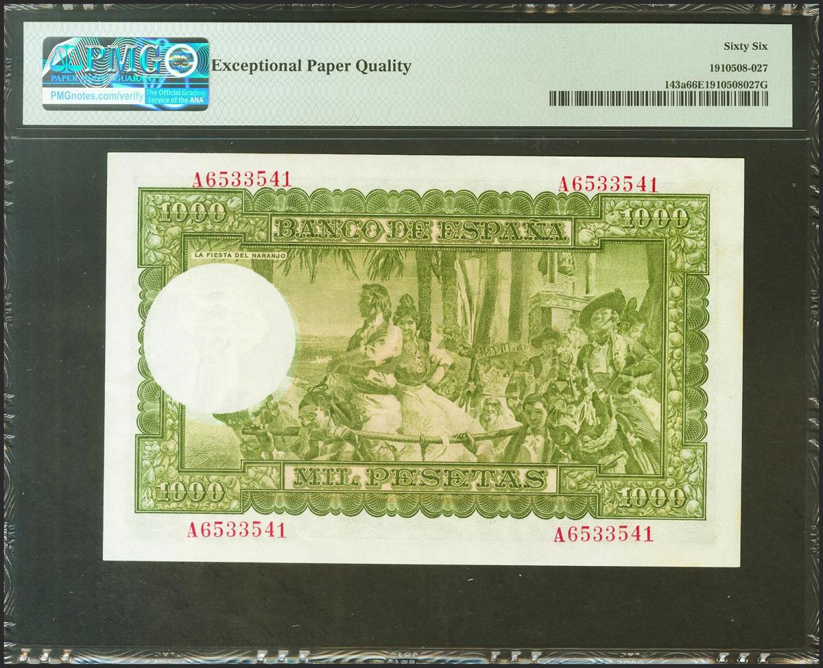 1000 Pesetas. 31 de Diciembre de 1951. Serie A. (Edifil 2021: 463a). Raro en esta calidad, conservando todo su apresto original. SC. Encapsulado PMG66EPQ.