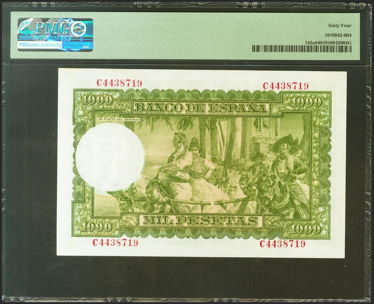 1000 Pesetas. 31 de Diciembre de 1951. Serie C. (Edifil 2017: 463a, Pick: 143a). Inusual. SC. Encapsulado PMG64.