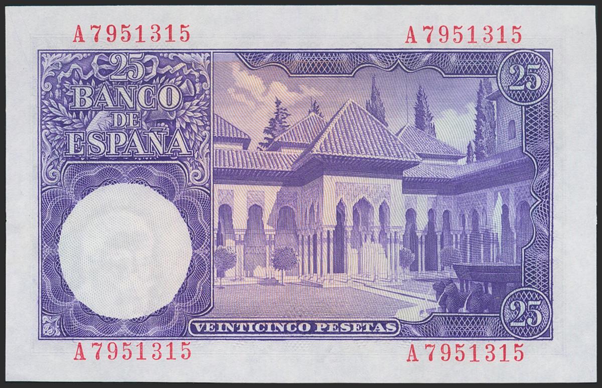 25 Pesetas. 22 de Julio de 1954. Serie A. (Edifil 2021: 467a). Apresto original. SC-.