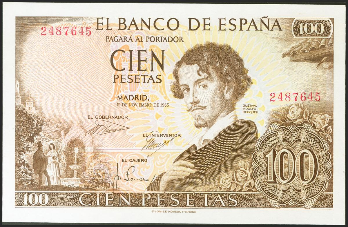 100 Pesetas. 19 de Noviembre de 1965. Sin serie. (Edifil 2017: 470). Apresto original. SC.