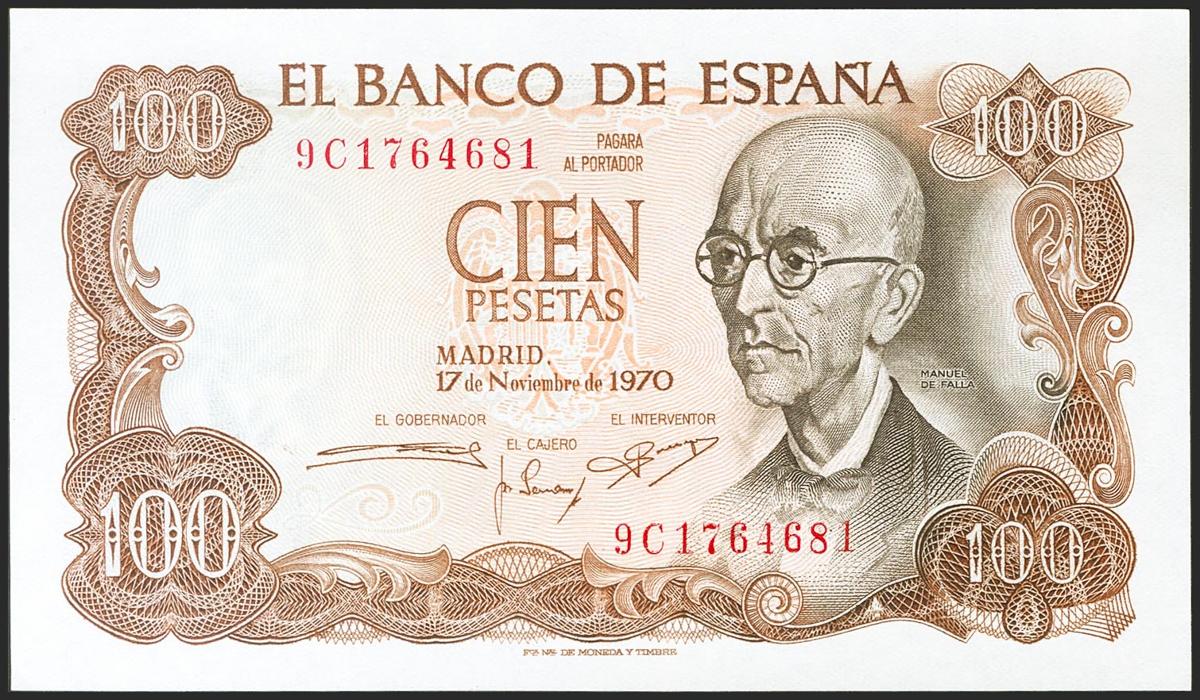 100 Pesetas. 17 de Noviembre de 1970. Serie especial 9C. (Edifil 2021: 472d). Apresto original. SC.