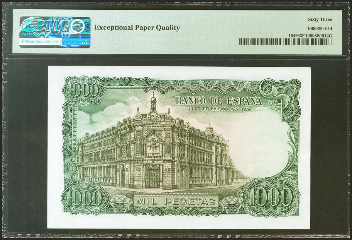 1000 Pesetas. 17 de Septiembre de 1971. Serie especial 9B. (Edifil 2021: 474d, Pick: 154*). Rara serie, apresto original. SC. Encapsulado PMG63EPQ.