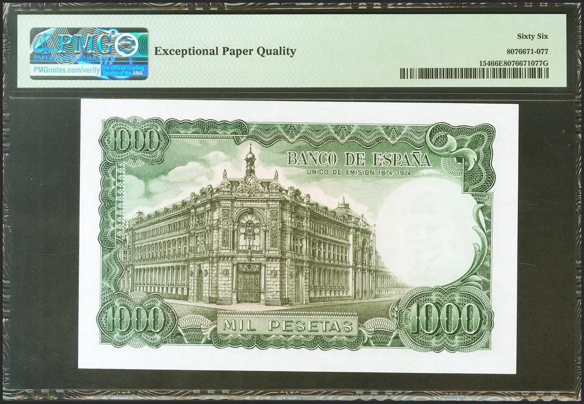 1000 Pesetas. 17 de Septiembre de 1971. Sin serie. (Edifil 2021: 474, Pick: 154). Inusual en esta calidad, apresto original. Encapsulado PMG66EPQ.