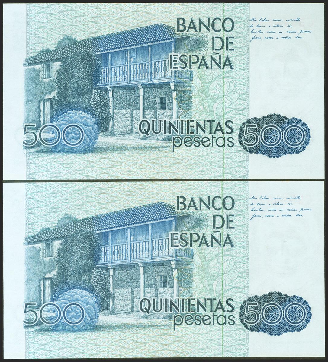 500 Pesetas. 23 de Octubre de 1979. Pareja correlativa. Serie C. (Edifil 2021: 476a). SC.