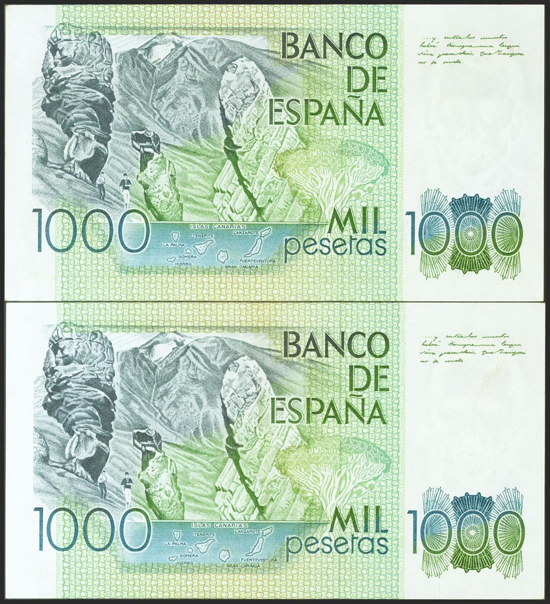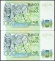 1000 Pesetas. 23 de Octubre de 1979. Pareja correlativa. Serie especial 9B. (Edifil 2017: 477b). Inusual. EBC+.
