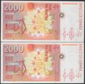 2000 Pesetas. 24 de Abril de 1992. Pareja correlativa. Sin serie y numeración baja. (Edifil 2017: 482). SC.