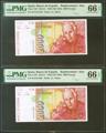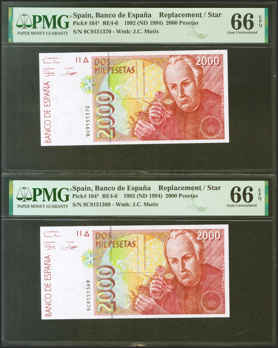 2000 Pesetas. 24 de Abril de 1992. Pareja correlativa. Serie especial 9C. (Edifil 2021: 482Ab, Pick: 164*). Rara en esta excepcional calidad, apresto original. SC. Encapsulado PMG66EPQ, ambos.