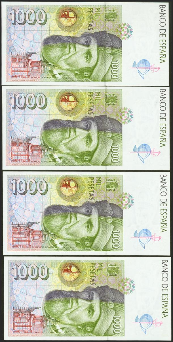 Conjunto de 4 billetes de 1000 Pesetas, emitidos el 12 de Octubre de 1992, sin serie. (Edifil 2021: 483). SC.