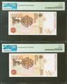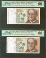 5000 Pesetas. 12 de Octubre de 1992. Pareja correlativa. Serie especial 9C. (Edifil 2021: 484b, Pick: 165*). Rarísima en esta excepcional calidad, apresto original. SC. Encapsulado PMG66EPQ, ambos.