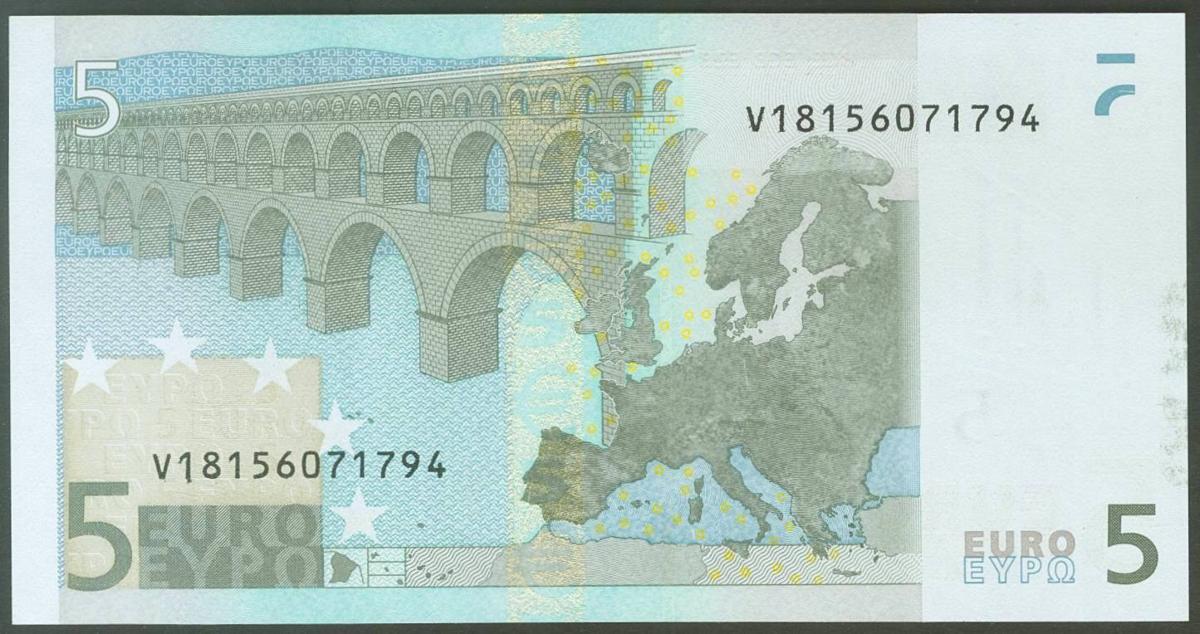 5 Euros. 1 de Enero de 2002. Firma Trichet. Serie V (España). (Edifil 2021: 486A). SC.