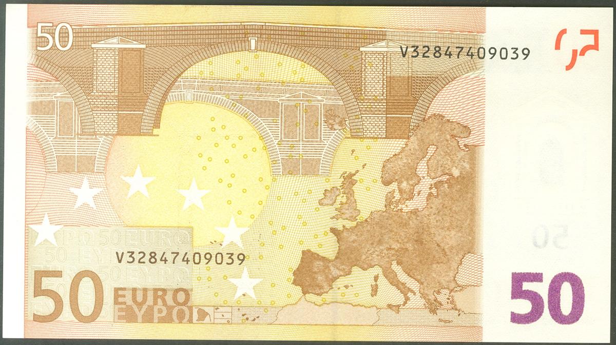 50 Euros. 1 de Enero de 2002. Firma Trichet. Serie V (España). (Edifil 2021: 489A). SC.