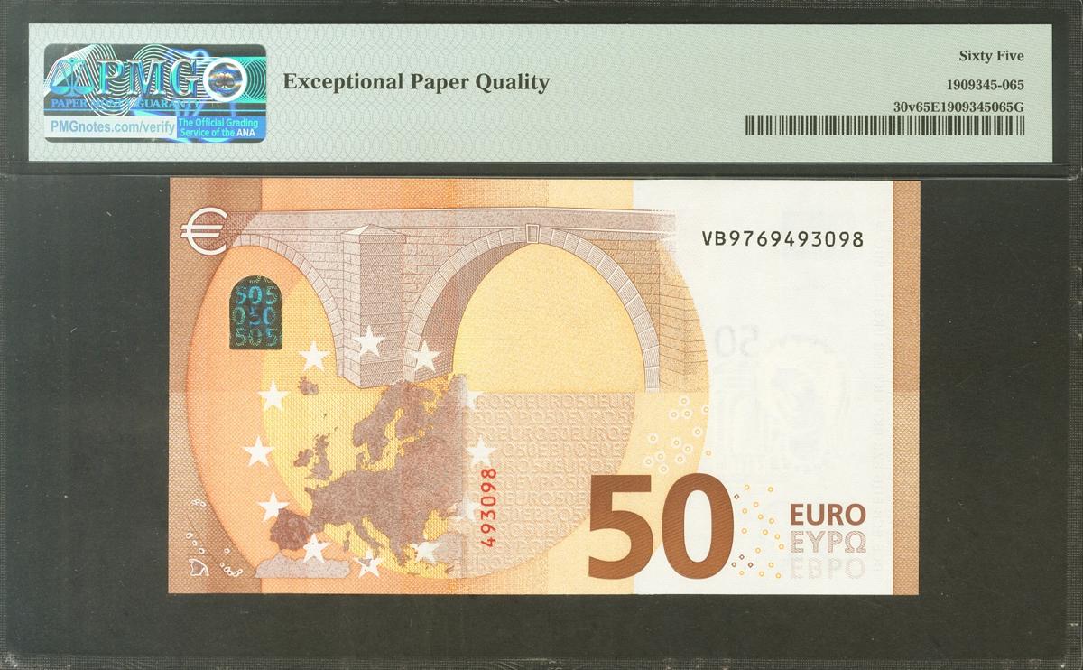 50 Euros. 4 de Abril de 2017. Firma Lagarde. Serie V (España). (Edifil 2021: 496, Pick: 30v). SC. Encapsulado PMG65EPQ.