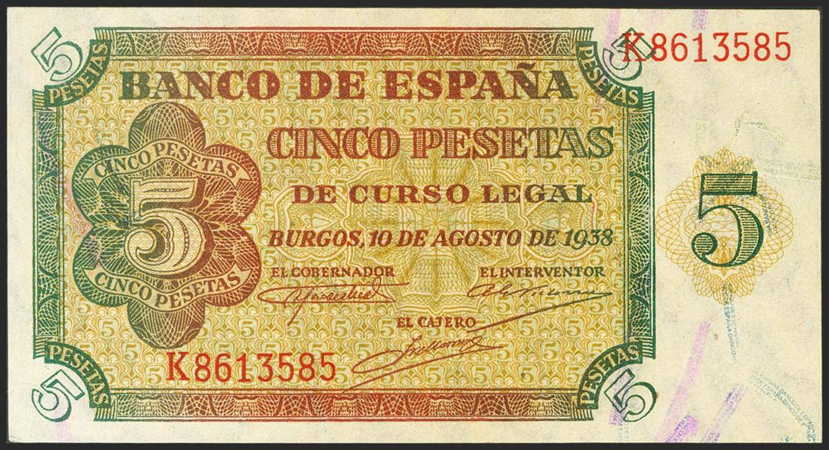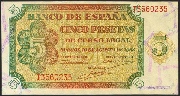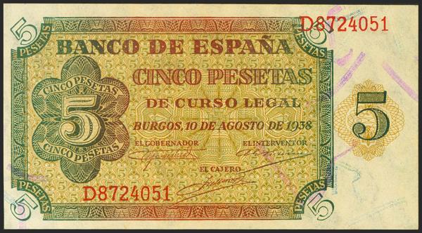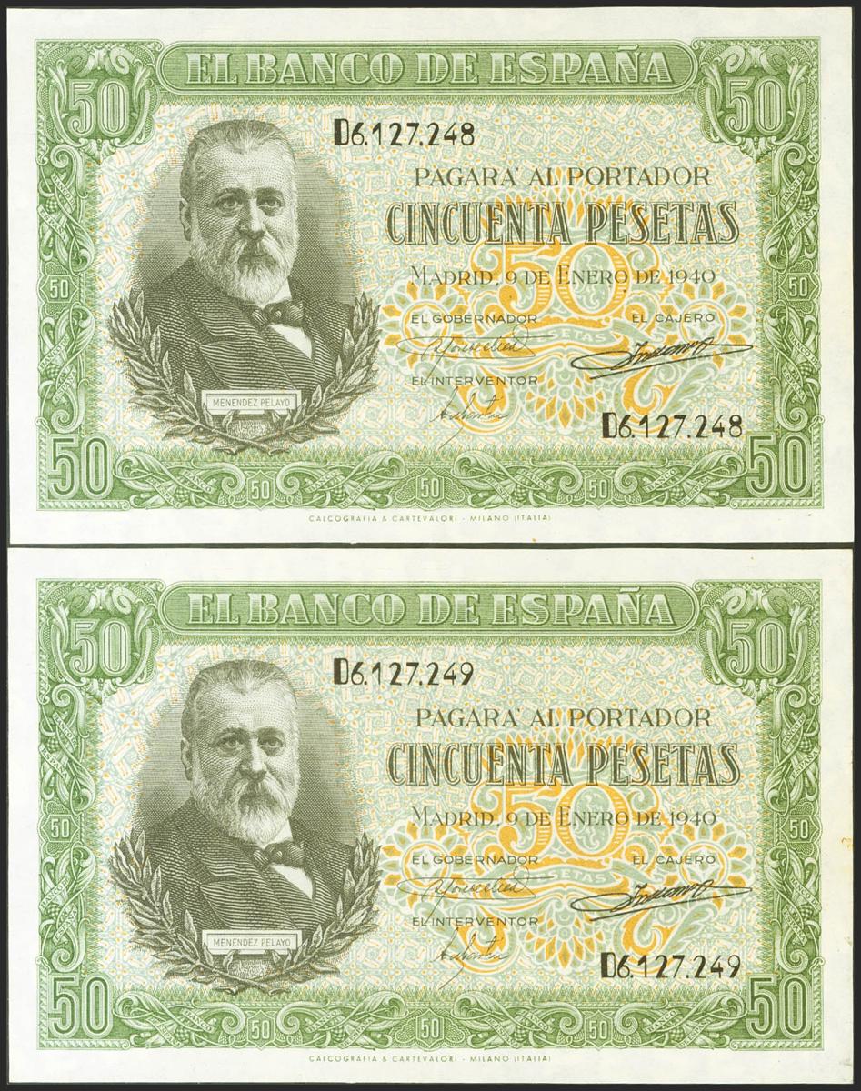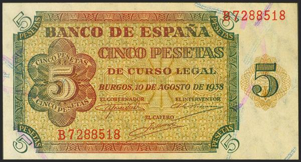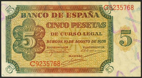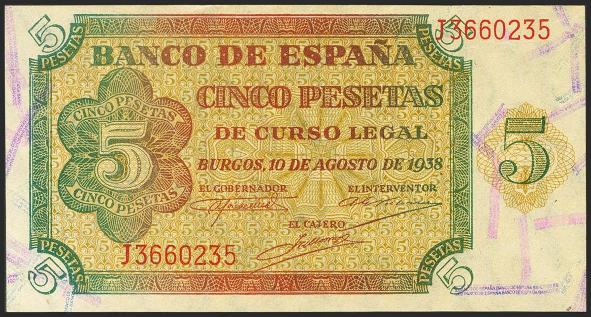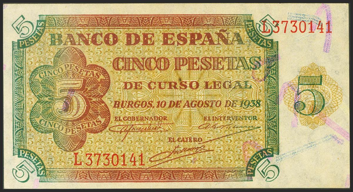 Terminada la contienda militar, el gobierno franquista decidió, a pesar del fracaso de la emisión de Julio de 1937, seguir contando con la imprenta italiana de los Coen, pero la emisión de 1940 ya viene firmada con el nombre que adoptarían desde entonces, Calcografia & Cartevalori, lo que, junto con el comentario anterior sobre el escudo, permite delimitar la prueba al periodo entre ambas emisiones de 1938 y 1940.
