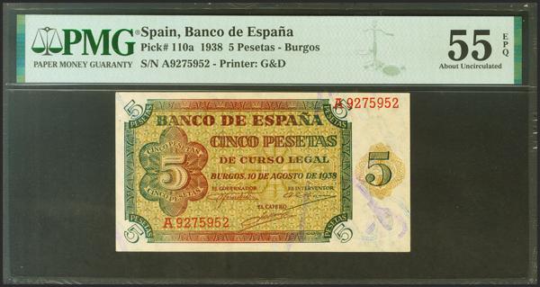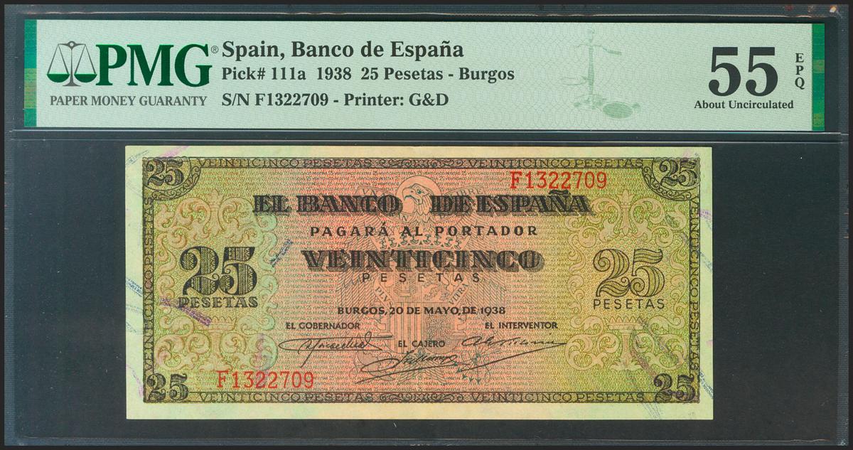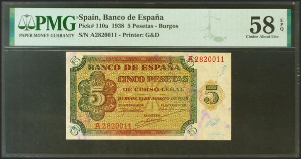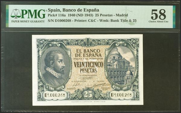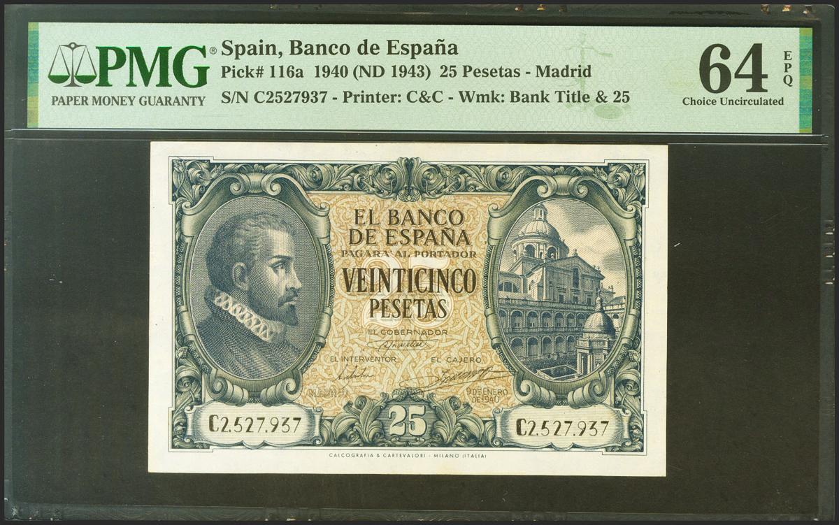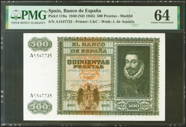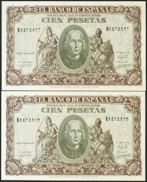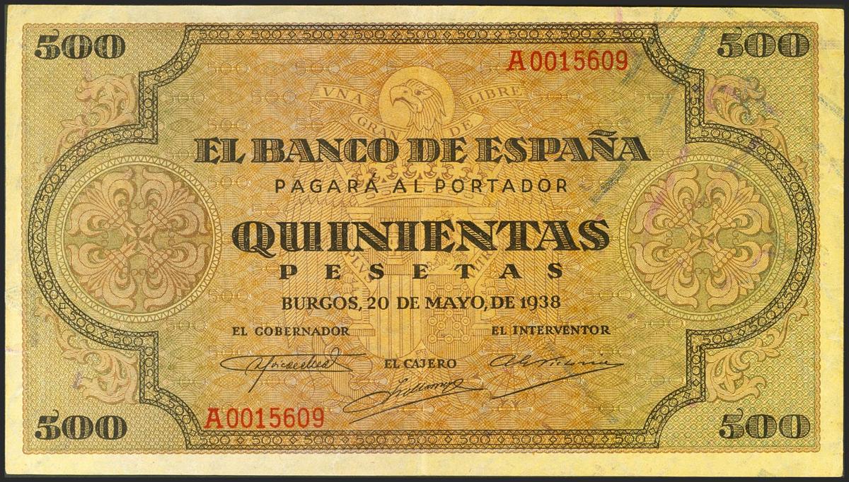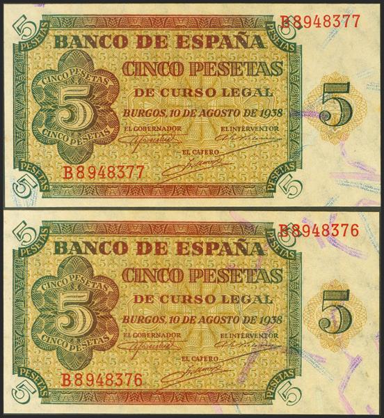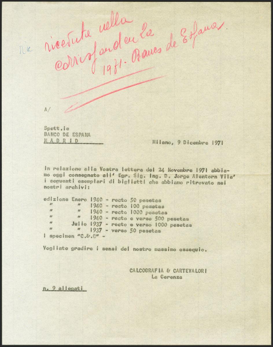 Terminada la contienda militar, el gobierno franquista decidió, a pesar del fracaso de la emisión de Julio de 1937, seguir contando con la imprenta italiana de los Coen, pero la emisión de 1940 ya viene firmada con el nombre que adoptarían desde entonces, Calcografia & Cartevalori, lo que, junto con el comentario anterior sobre el escudo, permite delimitar la prueba al periodo entre ambas emisiones de 1938 y 1940.