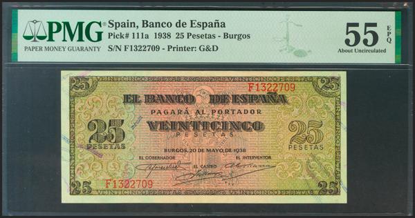 Resulta casi imposible fechar con exactitud esta prueba ni conocer su origen, aunque cabe sospechar de una muestra preparada para impresionar al gobierno franquista hacia 1939 o principios de 1940. Pero también se puede pensar en una muestra realizada en 1938 para la ejecución de trabajos de billetes divisionarios y para la cual el gobierno franquista solicitó precios y sugerencias a una gran cantidad de imprentas españolas y extranjeras. Según lo narra la Enciclopedia de la Notafilia y Escripofilia Española, Volumen 1, no existe constancia en el archivo del Banco de España de contacto alguno con los italianos en ese momento sobre este tema, pero sí que es cierto que algunos participantes presentaron propuestas de 1, 2, 5, 10 y 25 pesetas, pudiendo encajar este de 20 Pesetas en un ofrecimiento similar. Eso circunscribiría la prueba a una restringida ventana de tiempo desde Marzo hasta Julio de 1938, lo que guardaría coherencia con el uso de la misma plancha del escudo.