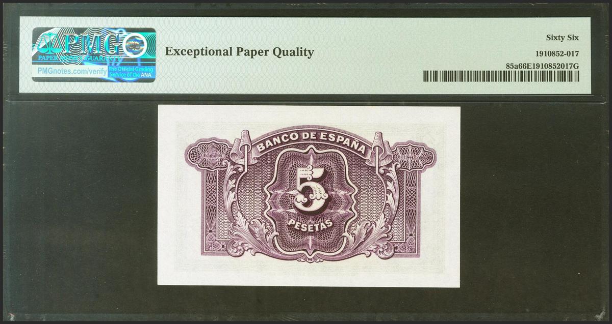 5 Pesetas. 1935. Certificado de Plata. Sin serie. (Edifil 2021: 363, Pick: 85a). Inusual en esta excepcional calidad, apresto original. SC. Encapsulado PMG66EPQ.