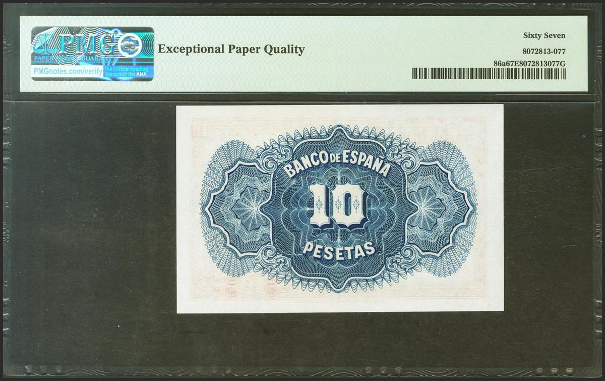 10 Pesetas. 1935. Sin serie. (Edifil 2021: 364, Pick: 86). Raro en esta excepcional calidad, apresto original. SC. Encapsulado PMG67EPQ.