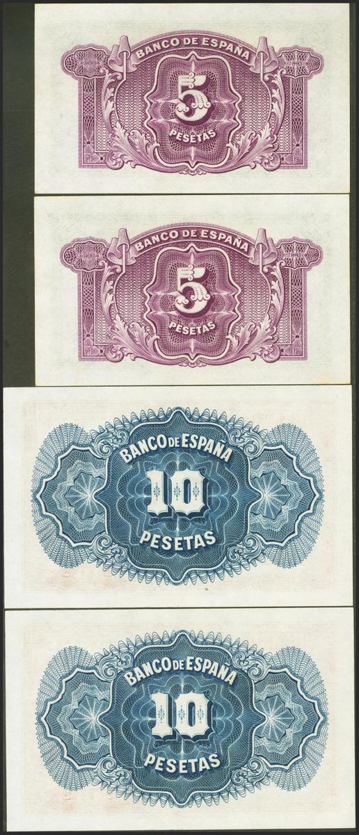 5 Pesetas y 10 Pesetas. 1935. Parejas correlativas. Certificado de Plata. Series B. (Edifil 2021: 363a, 364a). SC/SC-.