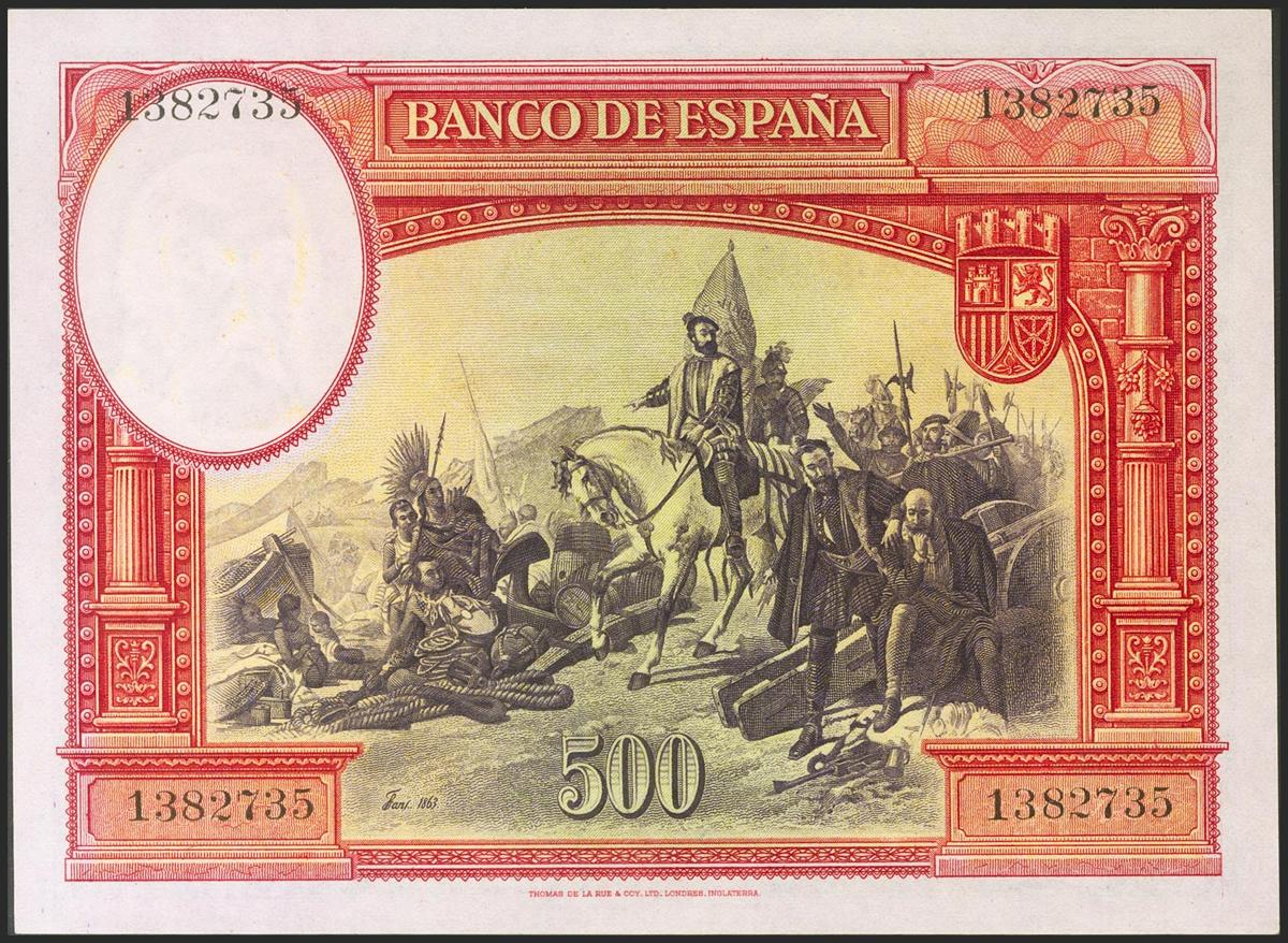500 Pesetas. 7 de Enero de 1935. Sin serie. (Edifil 2021: 365, Pick: 89). Apresto original. SC.