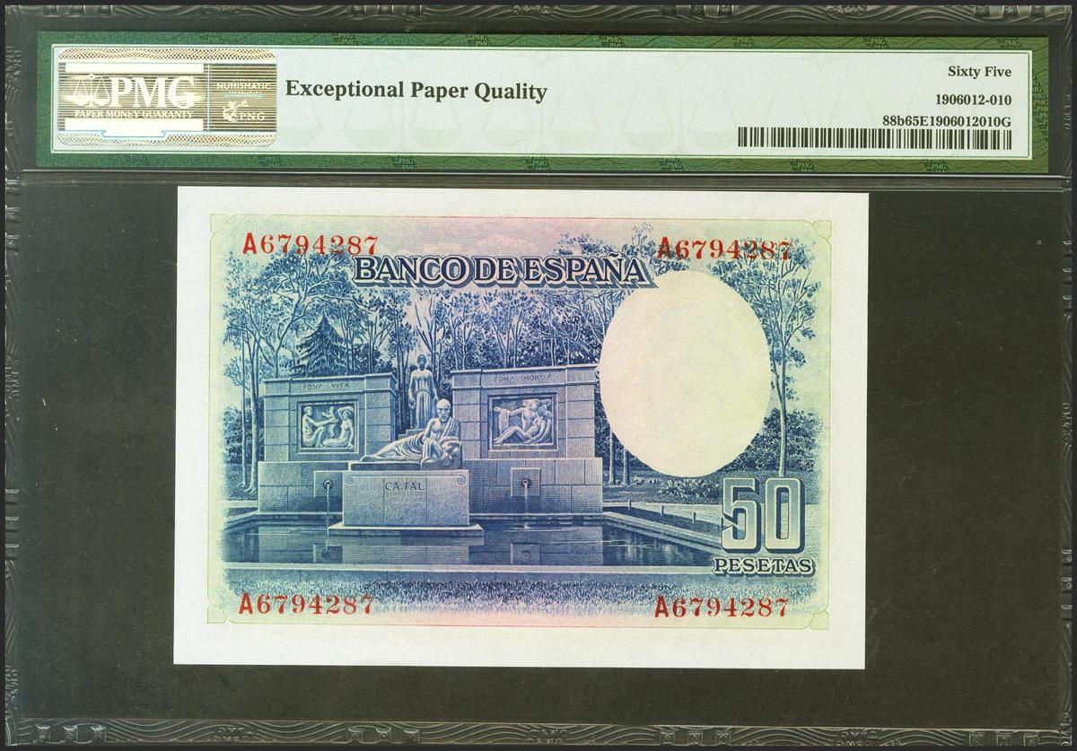 50 Pesetas. 22 de Julio de 1935. Serie A. (Edifil 2021: 366a). Apresto original. SC. Encapsulado PMG65EPQ.