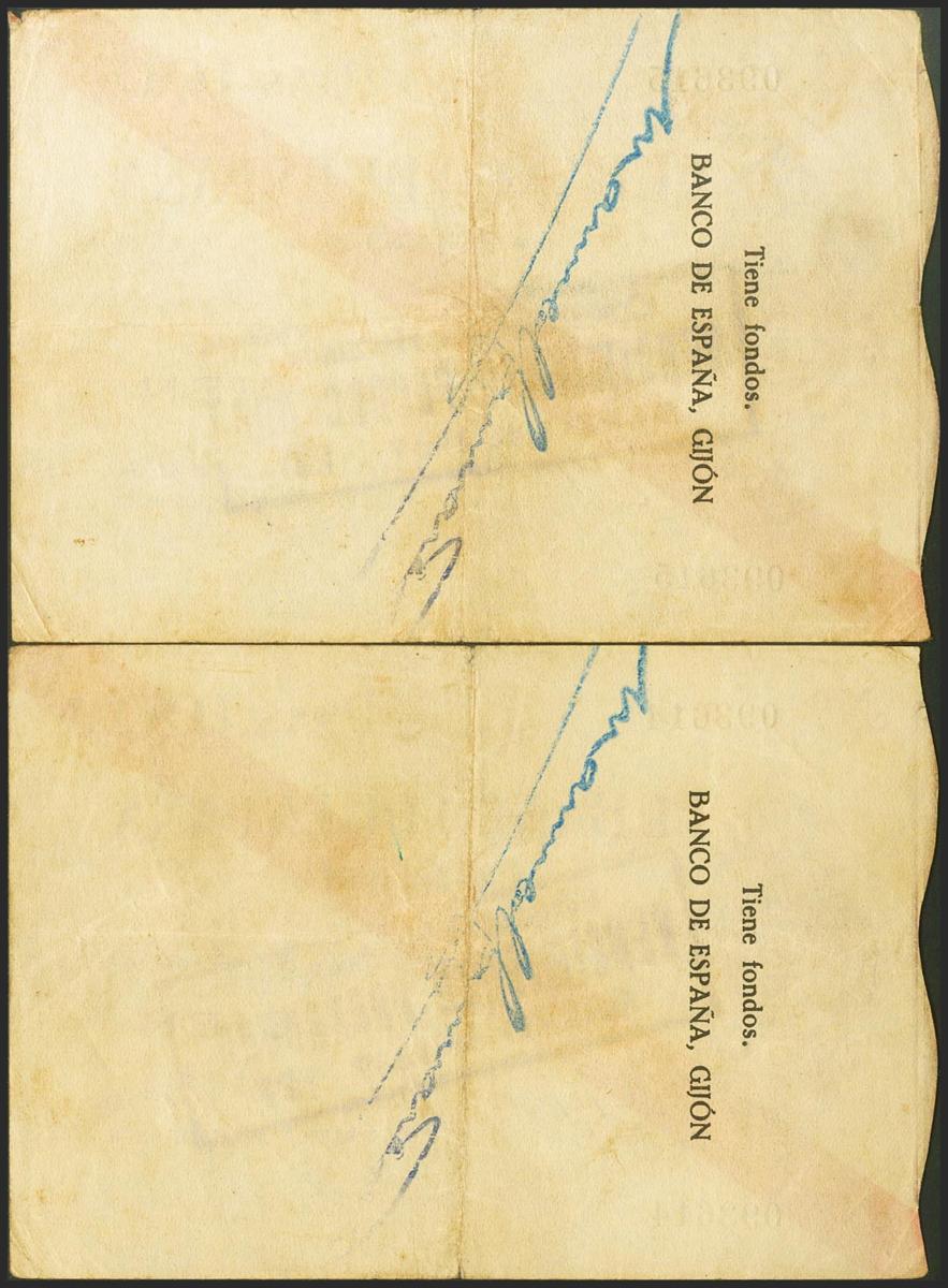 100 Pesetas. 5 de Noviembre de 1936. Sucursal de Gijón. Pareja correlativa. Sin serie. (Edifil 2021: 384). Rarísima pareja, especialmente en esta excepcional calidad para este billete, que siempre está en calidades bajas. EBC.
