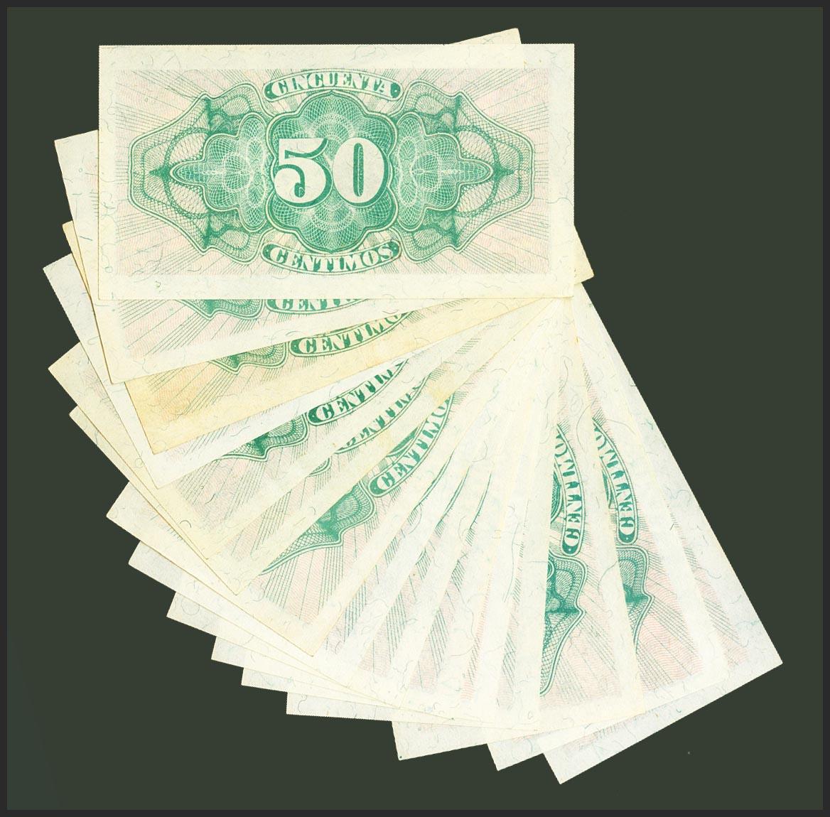 Conjunto de 15 billetes de 50 Céntimos Ministerio de Hacienda emitidos en 1937 y todos ellos con la serie B (Edifil 2021: 391), conservando el apresto original. SC/SC-.