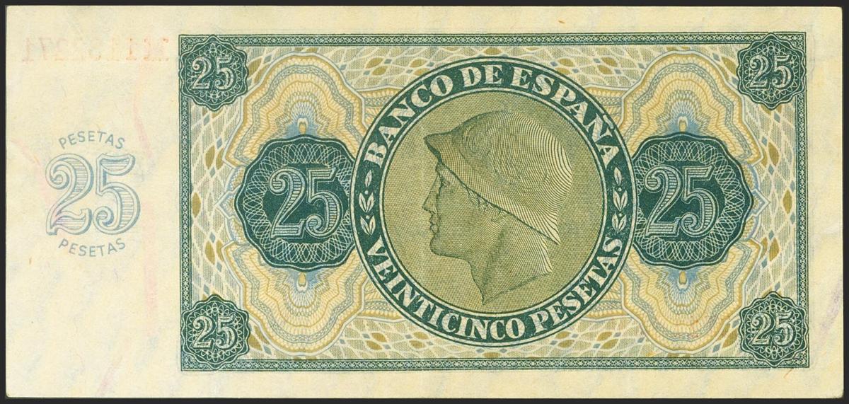 25 Pesetas. 21 de Noviembre de 1936. Serie M. (Edifil 2021: 419a). Conserva algo de su apresto orginal. EBC.