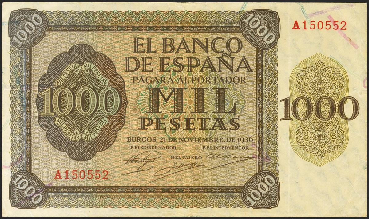 1000 Pesetas. 21 de Noviembre de 1936. Serie A. (Edifil 2021: 423). MBC.