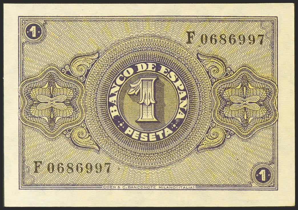 1 Peseta. 30 de Abril de 1938. Serie F. (Edifil 2021: 428a). Conserva todo el apresto original. SC.