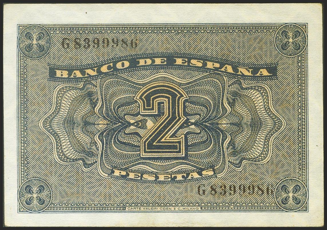 2 Pesetas. 30 de Abril de 1938. Serie G. (Edifil 2021: 429a). Apresto original. SC-.