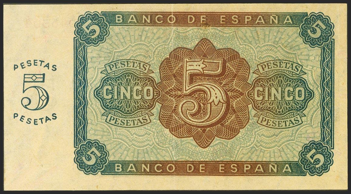 5 Pesetas. 10 de Agosto de 1938. Serie L. (Edifil 2021: 435a). Conserva parte de su apresto original. EBC.