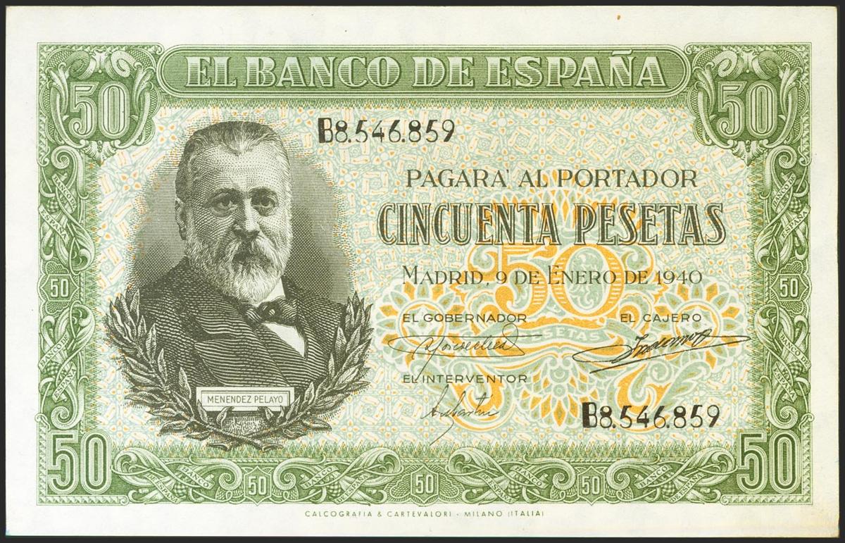 50 Pesetas. 9 de Enero de 1940. Serie B. (Edifil 2021: 437a, Pick: 117a). Inusual en esta calidad, apresto original. SC-.
