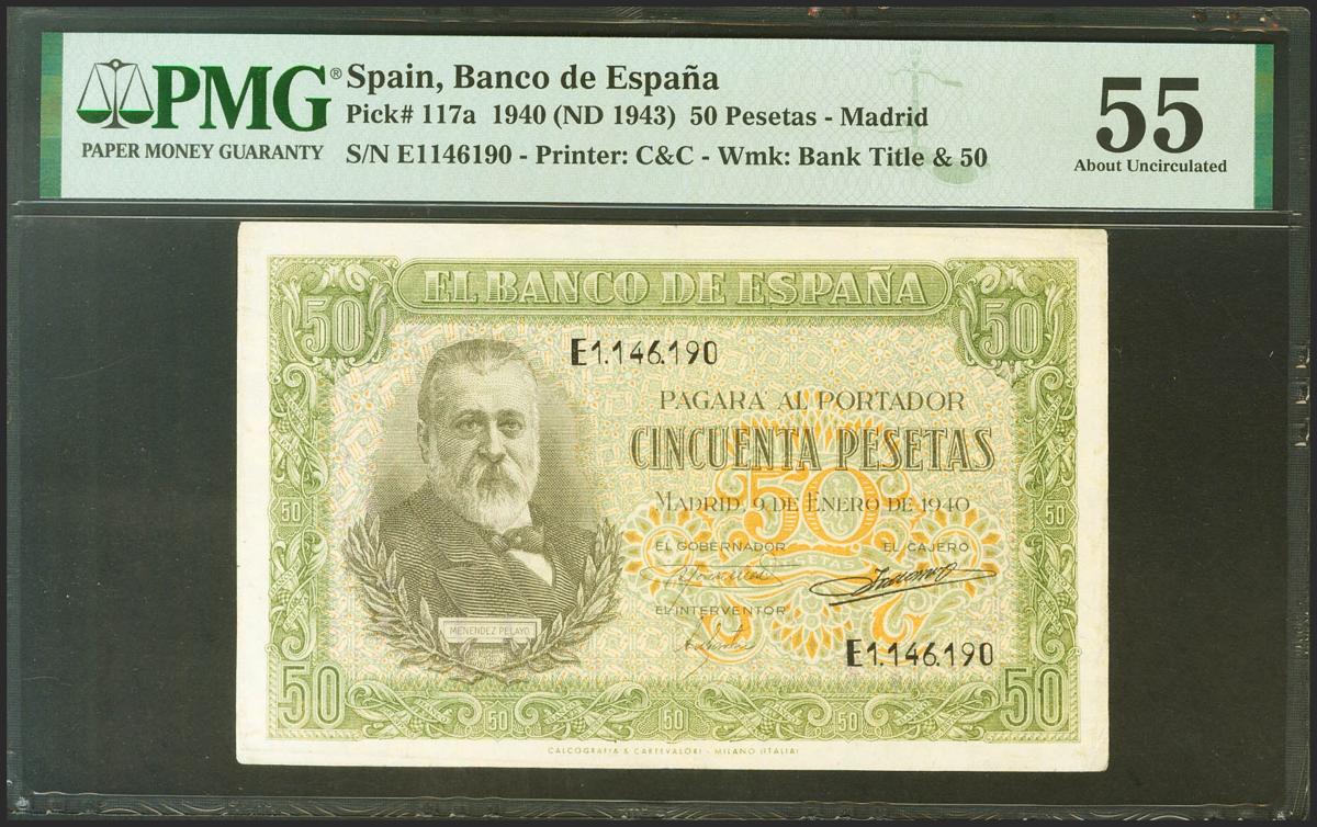 50 Pesetas. 9 de Enero de 1940. Serie C. (Edifil 2021: 437a, Pick: 117a). EBC+. Encapsulado PMG55.