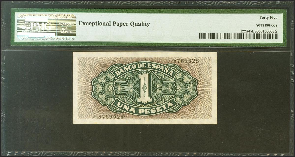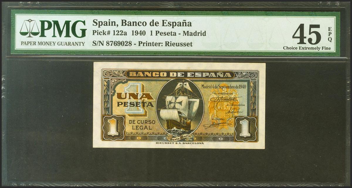 1 Peseta. 4 de Septiembre de 1940. Sin serie. (Edifil 2021: 442, Pick: 122a). Apresto original. EBC. Encapsulado PMG45EPQ.