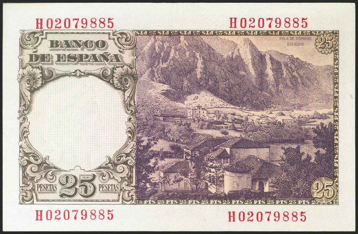 25 Pesetas. 19 de Febrero de 1946. Serie H. (Edifil 2021: 450a). Apresto original. SC.