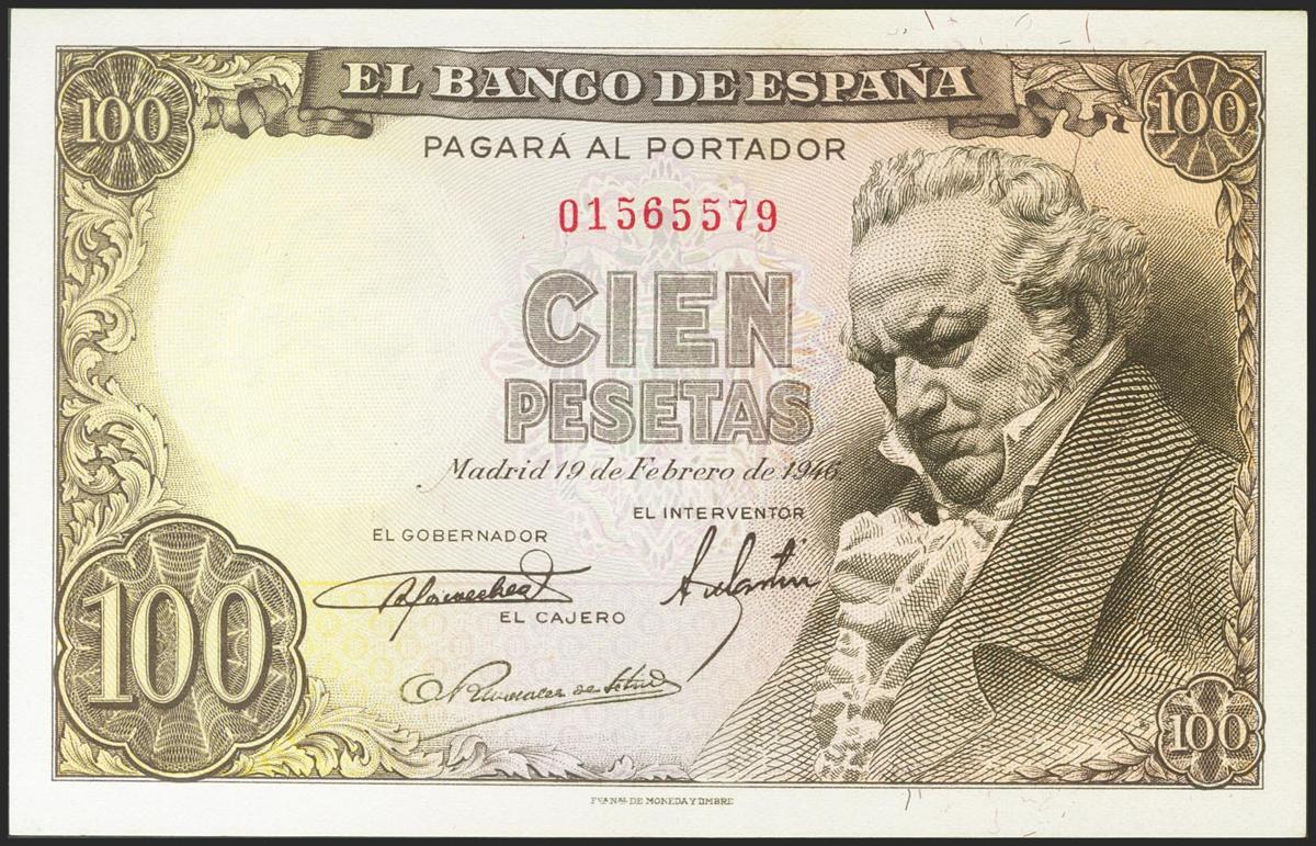 100 Pesetas. 19 de Febrero de 1946. Sin serie. (Edifil 2021: 451). Conserva gran parte de su apresto original. EBC+.