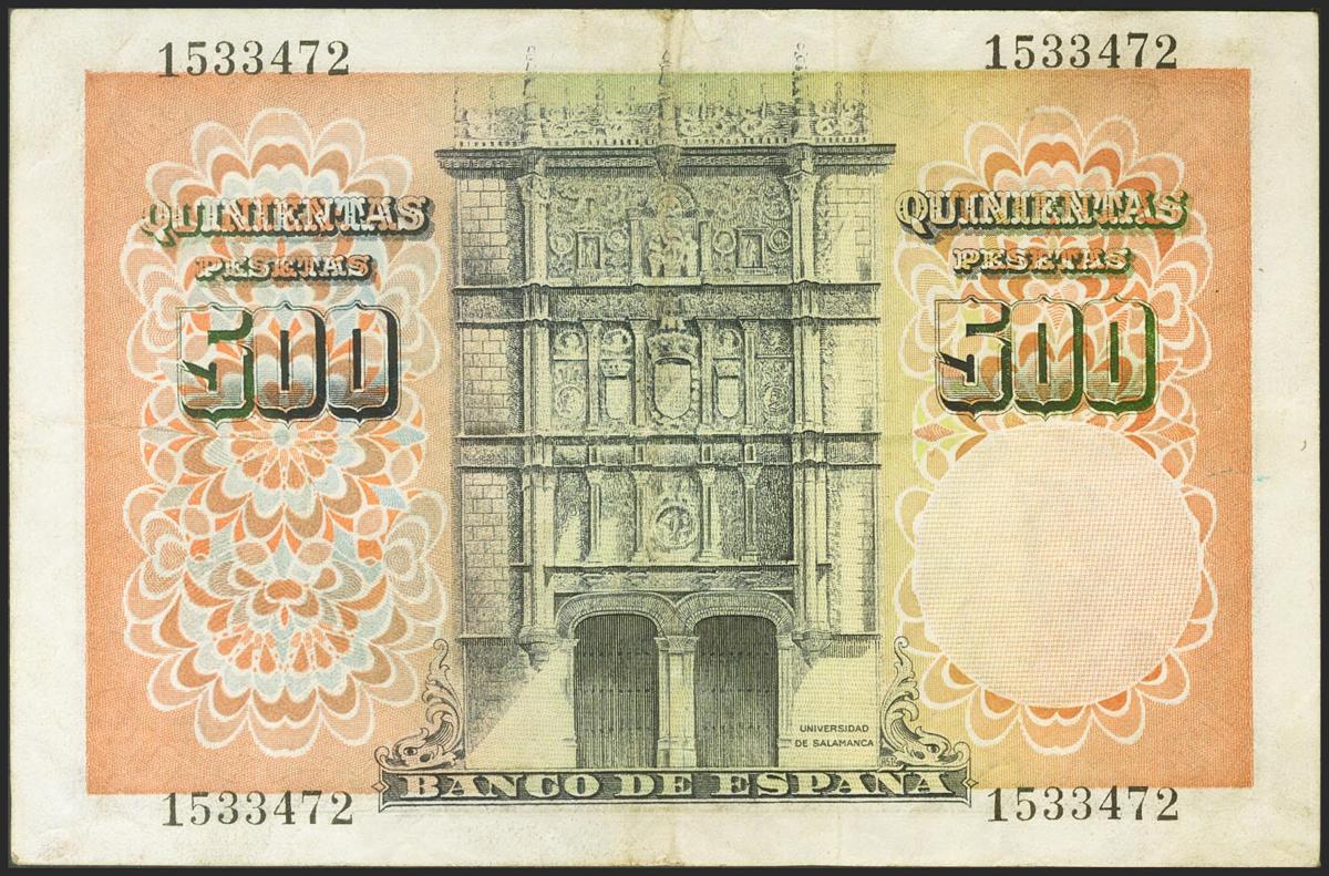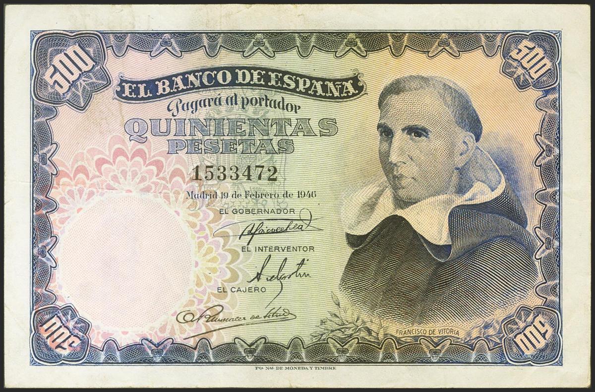 500 Pesetas. 19 de Febrero de 1946. Sin serie. (Edifil 2021: 452). MBC.