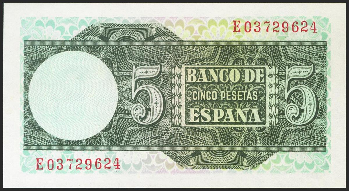 5 Pesetas. 5 de Marzo de 1948. Serie E. (Edifil 2021: 455a). Apresto original. SC.