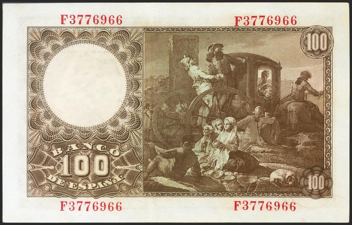 100 Pesetas. 2 de Mayo de 1948. Serie F. (Edifil 2021: 456a). Conserva parte del apresto original. EBC+.