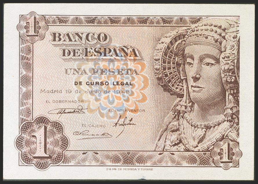 1 Peseta. 19 de Junio de 1948. Sin serie. (Edifil 2021: 457). SC--.