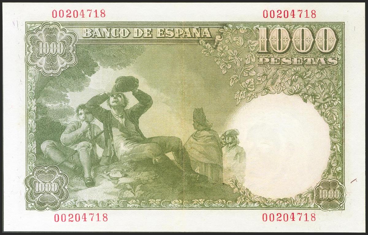 1000 Pesetas. 4 de Noviembre de 1949. (Edifil 2021: 458). Conserva parte de su apresto original, muy llamativo billete. EBC.
