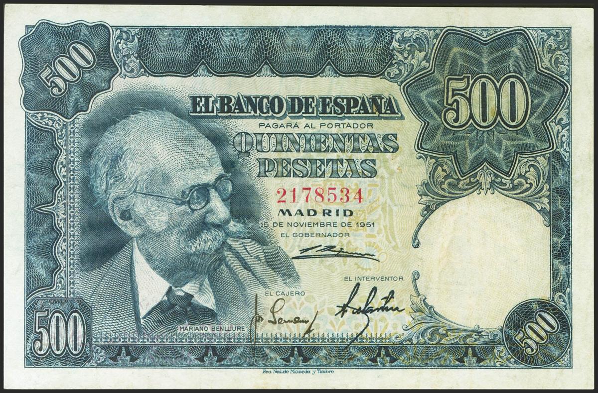 500 Pesetas. 15 de Noviembre de 1951. Sin serie. (Edifil 2021: 460). Conserva todo su apresto original. SC-.