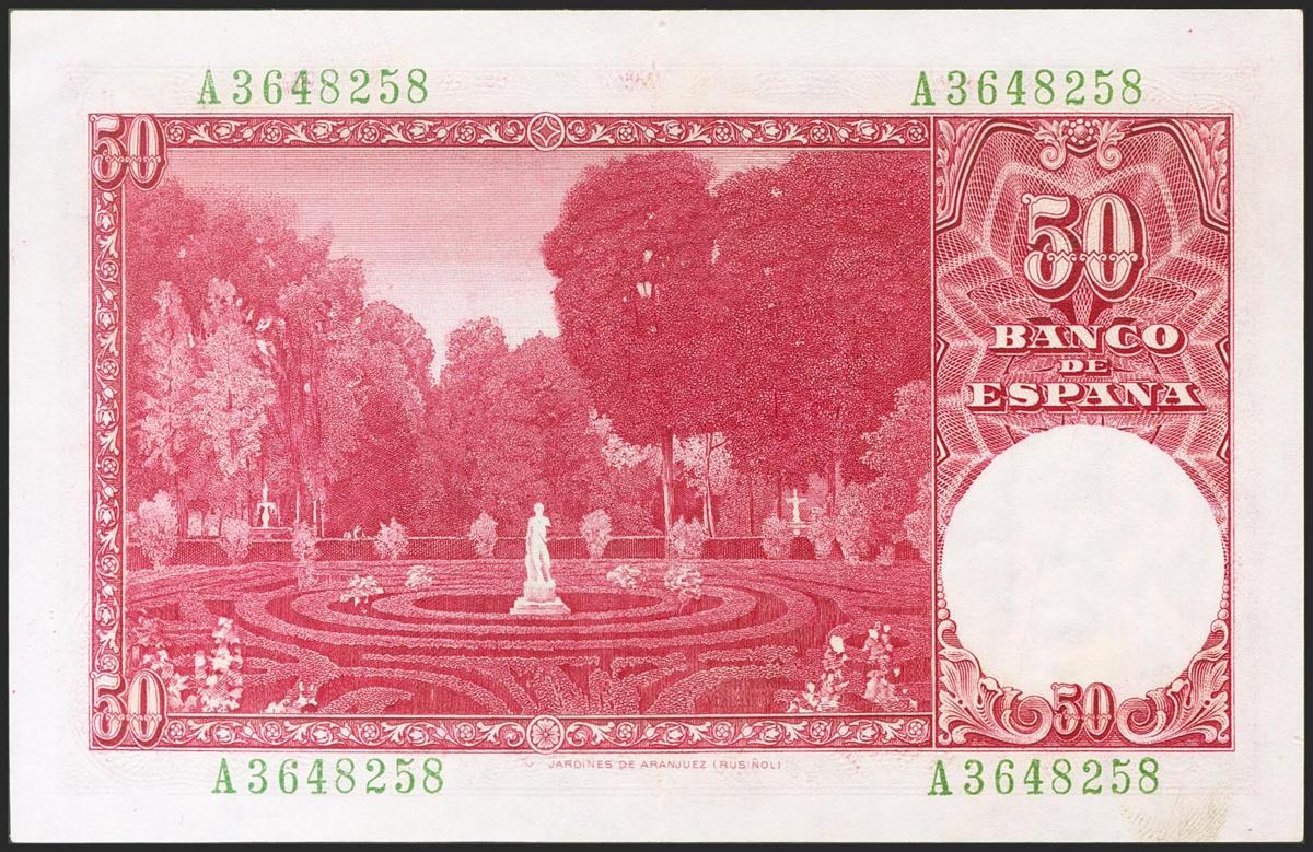 50 Pesetas. 31 de Diciembre de 1951. Serie A. (Edifil 2021: 462a). Conserva parte de su apresto original. EBC.